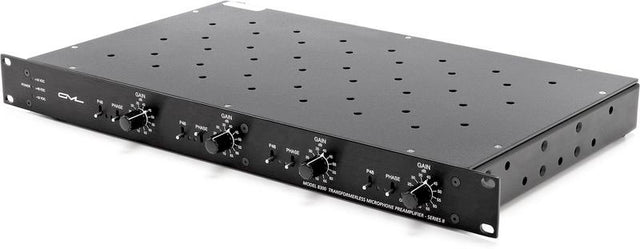GML Microphone Preamplifiers are world-renowned for their life-like realism, high resolving power, and reference-standard transparency. The Series II models are available as 2 channel "8302" and 4 channel "8304" versions. Our continuing research and review of up-to-date componentry maintains the legendary transparency that we're well-known for. The GML 8302 and the 8304 Series II have been reconfigured with front-panel-mounted phantom power and phase reverse switches, and the +48v phantom supply has been completely redesigned resulting in lower noise. Their all-discrete, bipolar transistor circuit topologies are completely transformerless with no FETs, ICs,or electrolytic capacitors in the signal path. Even the outputs are direct-coupled with time-proven active servos that remove DC without adding any artificial color. 10dB to 65dB of gain is front panel selectable on the front panel in precise 5dB steps. A +24dBv clip indicator warns of any impending overloads. Both GML 8302 and 8304 will occupy 1U rack space. Both versions ship with an external power supply (GML Model 8355) and a 5pin XLR power cable. As always the model 8302 can be upgraded up to 4 channels later on.