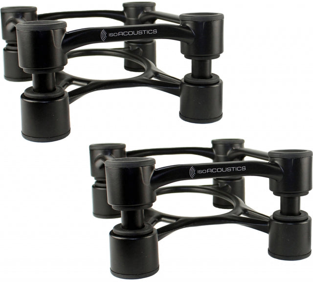Sculpted aluminum acoustic isolation stands designed especially for high end hi-fi bookshelf and desktop speakers, for large speakers on floor stands, as well as under floor-standing speakers. The Aperta 200's solid aluminum frame and isolator construction is designed to support large speakers weighing up to 75 lbs. The stand features a low profile (3.5 inches), enabling speakers to have a low stance while enhancing their clarity and performance. The stands' unique tilt adjustment enables the user to set the optimum tilt angle, with fine gradation markings provided to ensure precise angle adjustments.