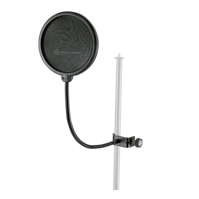 Double nylon screen for superior performance. Unobtrusive black round filter frame. Non-marring locking screw prevents scratching of mic stand.