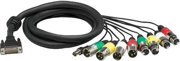 26-pin high-density male D-sub to four female XLR (8 mono AES input channels), four male XLR (8 mono AES output channels), and one female BNC (word clock I/O). Six-foot, 110-ohm shielded twisted pair cabling.