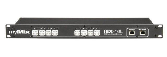 The myMix IEX-16L is a 16-channel input expander designed to enhance the capabilities of the myMix personal monitoring system by providing additional analog audio inputs. Housed in a 1U rack-mountable unit, it offers 16 balanced line-level inputs via two rear-panel DB25 connectors, facilitating seamless integration with mixing consoles, microphone preamps, or other audio sources.