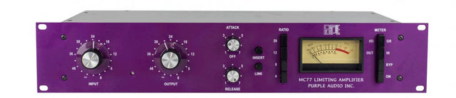 Starting in 1997 Purple started making the MC76, an 1176 type compressor base on the D & E version units. (MC is 1100 in roman numerals) At the time the 1176 was not available from any manufacturer. Coming from the repair background it was clear a better built, more road worthy unit could be build and sold new for less than the 20+ year old units that were coming through the shop. After another manufacture brought an 1176 clone on to the market Purple introduced the MC77. The MC77 added new features that were lacking from the original. Thousands of units later Purple keeps its parts and build quality high. Using parts that will last decades. Have a look inside and see for yourself. Toroidal power transformer, the best interlocking switches on the market, conductive plastic potentiometers. Quality for longevity.