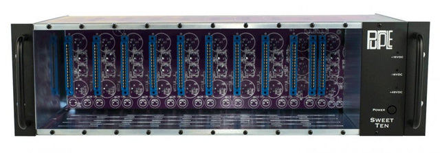 With the advancement of switching power supplies it is now possible to have a switcher that does not compromise audio performance and delivers or exceeds all specified current needs. We have spent years perfecting just such a power supply. We have comparatively tested all of our, and many of our competitors, modules at full bandwidth (10Hz - 500kHz) on lab quality over built bench supplies to make sure that the Sweet Ten is not compromising audio performance in any way. Simply put, your 500 series modules will perform at their highest level in our rack. Audio performance improvements are considerable.
