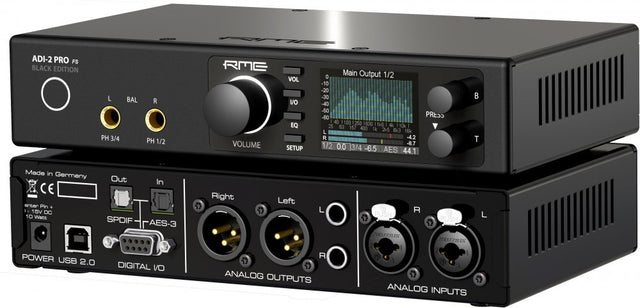 Analog or Digital - Options Galore The ADI-2 Pro includes two servo-balanced analog inputs on combo XLR / TRS jacks, two separate balanced and unbalanced outputs on XLR and TS, two stereo Extreme Power headphone outputs on the front, an optical SPDIF I/O that also understands ADAT, and coaxial SPDIF (RCA) and AES I/O (XLR) via an included breakout cable. This universal set of I/O options offers superior quality and flexible connectivity to those who take a no-compromise approach to audio.