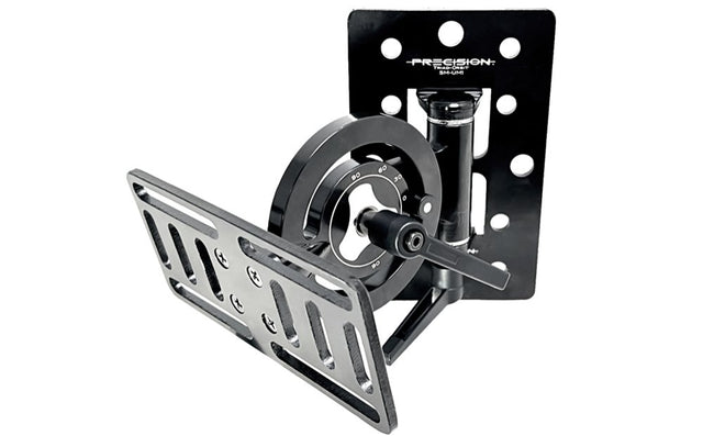 The Precision SM-UM1 is designed to accommodate a smaller, lighter range of speakers than the larger SM-1. As Immersive sound grows, smaller Atmos mix rooms are becoming more common, thus, the SPL levels are lower at a closer proximity and larger format studio monitors are less neccessary. UM1 does not use the pin locking system that SM-1 boasts, yet the powerful tilt function has built-in locking teeth. The pan knob has adequate strength to hold the pan adjustment in place. The universal mount pattern of UM1 allows it to adapt to virtually any 2-hole speaker pattern, regardless of manufacturer up to 26 lbs. The back plate of UM1 has been designed to slide into our WM-1 wall mount for ease of installation, if desired.