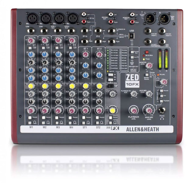 The ZED-10FX's combination of high-quality preamps, flexible input options, onboard effects, and USB connectivity makes it a practical choice for musicians and engineers seeking a reliable mixer for both live and studio settings. Its intuitive layout and solid construction reflect Allen & Heath's commitment to delivering professional audio solutions in a compact format.
