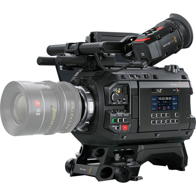 Camera Body Optimized for High End Productions! URSA Cine is designed to meet the demands of any high end production. The evenly weighted camera body is built with a robust magnesium alloy chassis and lightweight carbon fiber polycarbonate composite skin to help you move quickly on set. Soft touch backlit buttons make controls easy to see in all conditions. There's a 5″ fold out touchscreen for reviewing shots and accessing camera settings, plus a dedicated assist station on the other side of the camera, with 5″ LCD and full camera controls! Standard Lemo and Fischer connectors let you control the camera remotely while providing power for lens motors and other accessories. You also get 12G'SDI out, 10G Ethernet, USB-C, XLR audio and more!