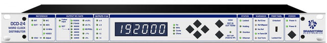 The DCD-24 is both a Word Clock Generator and a Distributor, using exceptional jitter reduction technology. With 24 BNC outputs the DCD-24 sends accurate Word Clock throughout an installation.