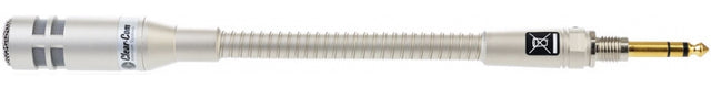 Gooseneck microphone features a gold-plated, threaded, and locking 3-conductor quarter-inch phone plug connector (9" length, 22cm)