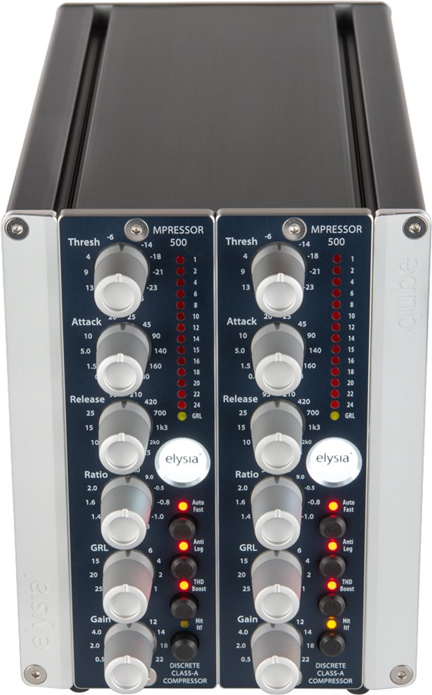 Analog Soul Food for the most flexible and powerful compression you can get. Including the power of two! of our famous and award-winning compressors from the future, the mpressor 500. So this will give you 2 dynamic processing geniuses for recording and mixing. So why don't you make it stereo This qube provides you a very easy recipe for cooking sounds with a serious punch and all the aromatic advantages you may already know from elysia. If not, you have to taste.