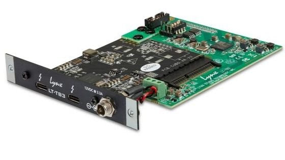The LT-TB3 is the latest in a series of LSlot connectivity cards available for the acclaimed Aurora(n) and Hilo A/D and D/A converter interfaces. The LT-TB3 allows the Aurora(n) and Hilo to have direct connectivity to Thunderbolt 3TM equipped devices without the need of Thunderbolt adapters. Other LSlot modules available include Dante, USB and ProTools|HD versions. Lynx's continual LSlot module development ensures the Aurora(n) and Hilo will continue to be compatible with the future high performance connectivity standards for both PC and Mac.