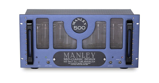 The Manley 500 and 250 Watt Monoblocks are our most powerful push-pull production-models. Both the circuit design and the selected componentry have been refined over years and years of development. Reliability that you can depend upon combined with musical accuracy and emotional authority is what these amplifiers promise- and deliver. They are able to switch operation modes allowing the listener to choose between the sonically seductive qualities of triode and the more powerful Ultra-Linear configuration. We use big, beefy reservoir capacitors in the high voltage supplies giving plenty of instant energy for dynamic performance of transient peaks and bass impact and weight which often exceeds that of rival solid-state amplifiers. We run high voltages on the plates of the output tubes but operate them at lower current which will result in their longer life. Although each output tube has its own bias-adjust, We carefully fit each amplifier with computer-batched tubes for optimum performance. The bias adjustment pots and measuring points are conveniently located behind the oval front panel insert.