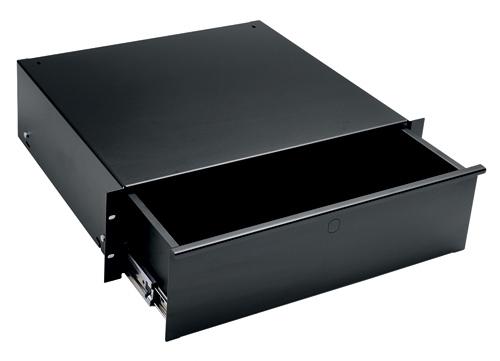 The UD Series drawers offer an economical rack storage solution. Full extension ball bearing slides extend a full 14" to reveal inside dimensions measuring 15-7/8" wide by 14-1/2" deep. Each model comes with a face formed drawer pull. User-installed latch and keylock are available options. Black powder coat finish.