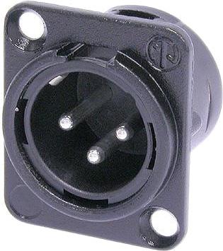 3 pole male receptacle, solder cups, black metal housing, silver contacts
