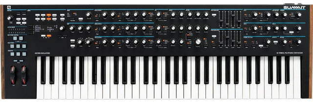 The best sounding synthesiser Novation has ever made Summit doubles the power of Peak's digital New Oxford Oscillators up to 16 voices and two parts, and adds a wealth of new features and a premium-quality five-octave keyboard. A synth much greater than the sum of its parts, it gives the serious producer or performer everything they need to design and play stunning basses, leads, arps, pads, effects and beyond.