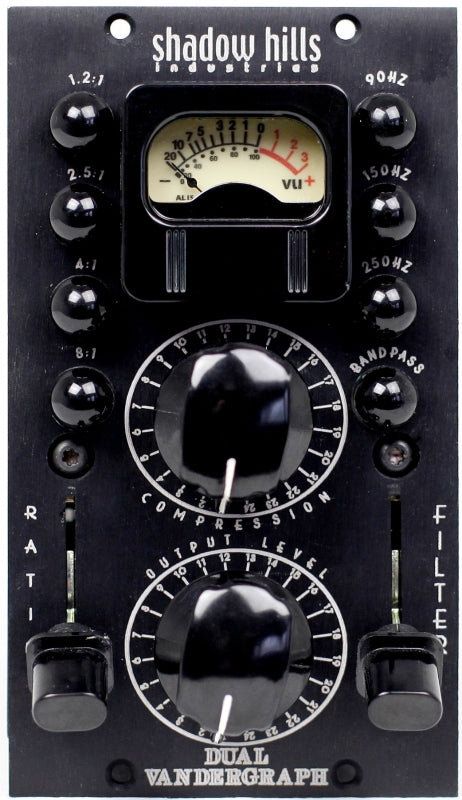 The Shadow Hills Dual Vandergraph is a high-end, 500 series stereo compressor designed for professionals in the audio engineering and music production fields. Renowned for its rich, vintage-style compression, the Dual Vandergraph brings the essence of Shadow Hills' flagship mastering compressor to a more compact, rack-mounted unit. This compressor is designed to provide precise control over dynamics while adding a unique tonal character to your mixes, making it ideal for both tracking and mastering applications.