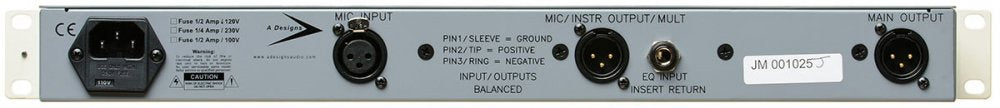 Instrument Input Preamplifier No need for a Direct Box/DI. This is a high-impedance unbalanced preamplifier designed for guitar/bass pickups and keyboards such as vintage synthesizers. Independent from the mic-pre, the instrument preamplifier section uses a single-stage discrete opamp. It includes a front-panel 1/4 TS Switchcraft input jack with a gain pot and on the back panel a Hi/Low gain switch. Also featured is the addition of a separate unbalanced instrument direct output jack that breaks the signal feed to the Output Mult and EQ sections. This allows the Instrument section to be truly independent. The Source Switch has no effect when using this output jack.