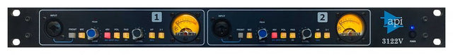 The 3122V provides 2 channels of API's signature analog sound and features the same legendary circuit design found in the 3124V and 3124MV, as well as the 312, 512V, and 512c mic preamps. In addition to the familiar combination of 2520 Op Amps and proprietary output transformers that give all API mic preamps that punch and massive headroom, the 3122V also includes front and rear panel XLR and ¼" inputs (conveniently selectable on the faceplate), a fixed-frequency HP filter, GAIN and the popular Variable Output Level control, as well as 48V, POL, and PAD. Rounding out the expansive feature set are the 3:1 Output Transformer Tap and 2 stunning analog VU meters with a separate peak LED.
