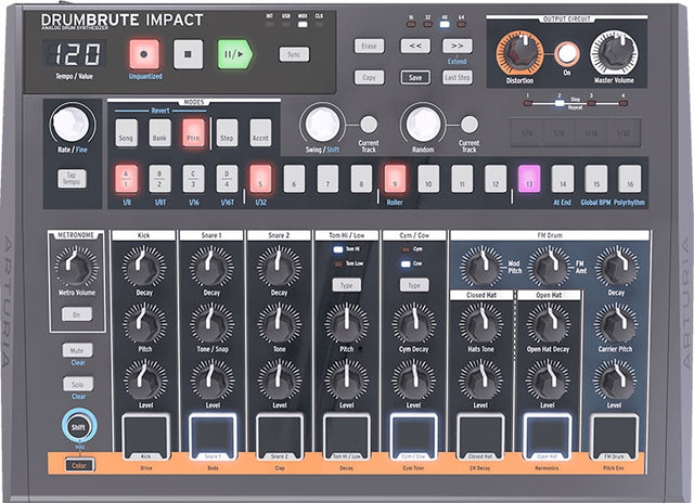 This is the drum machine you've been waiting for. Combining bold, hard-hitting analog sounds, a monstrous output distortion, performable controls, superb connectivity, and a powerful sequencer, DrumBrute Impact will fill your music with energy and muscle.