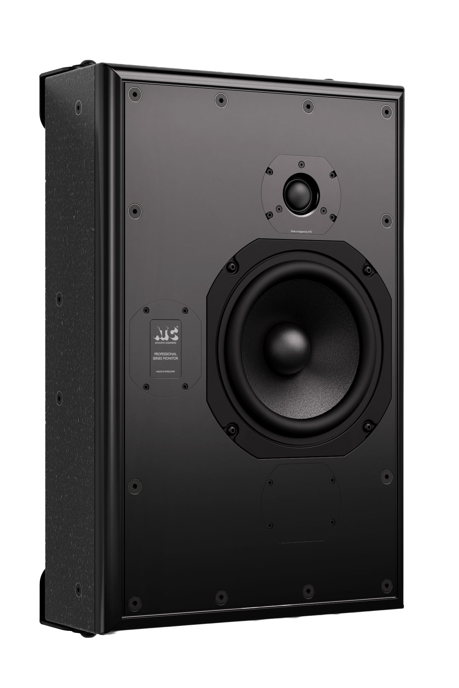 The enclosure measures just 147 mm (5-13/16") deep, including the mounting hardware. A custom-designed mounting system allows the monitor to sit flush against the wall or ceiling, then pivot toward the listening position, preserving frequency response and ensuring precise stereo and spatial imaging. Users can mount the cabinet in portrait or landscape orientation, enhancing flexibility for ceiling or wall-mounted immersive configurations.