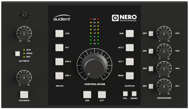 Outputs Reference your mixes on up to three sets of speakers, independently set and match volume for all speakers and audition and assign your sub to any monitor path. Nero also provides one dedicated monitor grade headphone amp and three foldback grade headphone amps, making sure you're ready to take on the loudest of sessions with crystal clear headphone mixes.