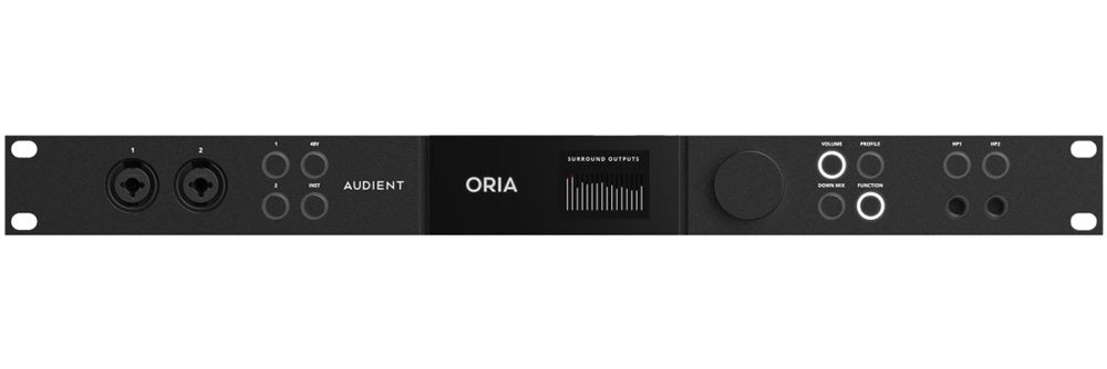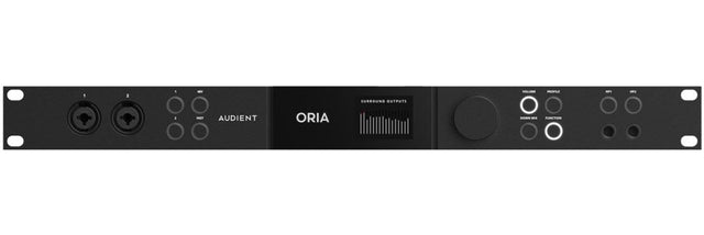 The Audient ORIA is a cutting-edge audio interface and monitor controller tailored for immersive audio production, accommodating multi-speaker arrays from stereo up to 9.1.6 configurations. Ideal for applications in music, film, TV, gaming, and virtual reality, ORIA enables precise calibration, control, and monitoring of complex speaker setups, ensuring an accurate and efficient workflow for immersive audio projects.