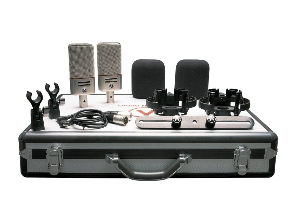 Designed by a team of former AKG personnel, the silver Austrian Audio OC818 Dual Set Plus is a matched pair of large-diaphragm studio condenser microphones, offering detailed audio capture and immense sonic customization that's ideal for stereo miking solo instruments, drum kits, and ensembles. The handmade 1" ceramic capsule features two gold-plated polymer membranes to enable multiple polar patterns. Utilize the 5-position switch to set the OC818 to figure-8, hypercardioid, cardioid, omnidirectional, or wide cardioid. Each diaphragm is routed to a separate output connector for dual-channel recording, which allows you to design custom polar pattern responses across five frequency bands via the open-source PolarDesigner plug-in or achieve a tweakable stereo image thanks to the StereoCreator plug-in (also open-source). Alternatively, the secondary output can be connected to the optional OCR8 Bluetooth module if you wish to enjoy convenient wireless control and selection of 255 polar patterns via the free iOS/Android PolarPilot app. Front-panel switches are provided for easy access to the pad and roll-off settings. Set the pad to -10 or -20 dB to avoid distortion when miking loud sources such as drums or guitar cabinets. Activate the high-pass filter at 40, 80, or 160 Hz for attenuation of low-frequency problems, including rumble and proximity effect.