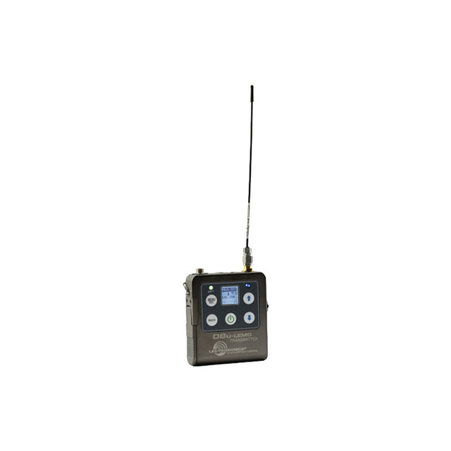 Designed around a 3-pin LEMO input with servo bias, the DBu accommodates a variety of lavaliers, headset mics, dynamic microphones, and even line-level signals. Its DSP-controlled input limiter, high-quality preamp, and 44 dB of gain adjustment in 1 dB steps provide clean, studio-grade audio performance. Users can choose between 25 and 50 mW RF output power, balancing range and battery life. Housed in solid machined aluminum with a durable black electroless nickel finish, it features a detachable antenna, backlit LCD, and a programmable top-panel switch that can serve as a mute, talkback, or power button.