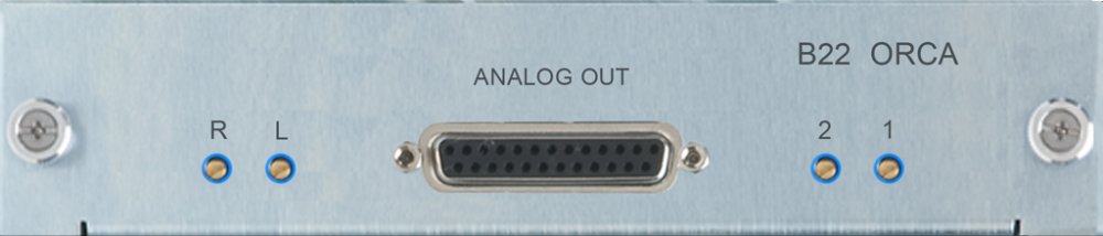 The B22 ORCA employs 4 DAC channels. The first two are mix/mastering grade DAC channels with switchable BX5 output transformers. These channels can be used to feed a separate headphone amp or a mix/mastering chain. You can also use these channels to send out tracks for analog processing. The second two DAC channels feed the main monitor section which features two stereo speaker outputs and one stereo headphone output.