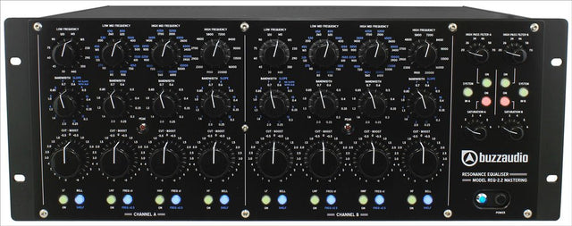 The Buzz Audio REQ-2.2 is a high-end mastering equalizer designed for precise and flexible audio shaping. Using inductor-based resonant circuits, it provides a wide range of frequency and bandwidth adjustments, offering up to 72 frequency options per channel. Its unique design avoids the limitations of traditional EQs while maintaining a big, open sound. The addition of a saturation feature allows for subtle harmonic distortion, adding warmth to the audio. Its sturdy design, intuitive controls, and retro aesthetics make it an excellent choice for mastering professionals.
