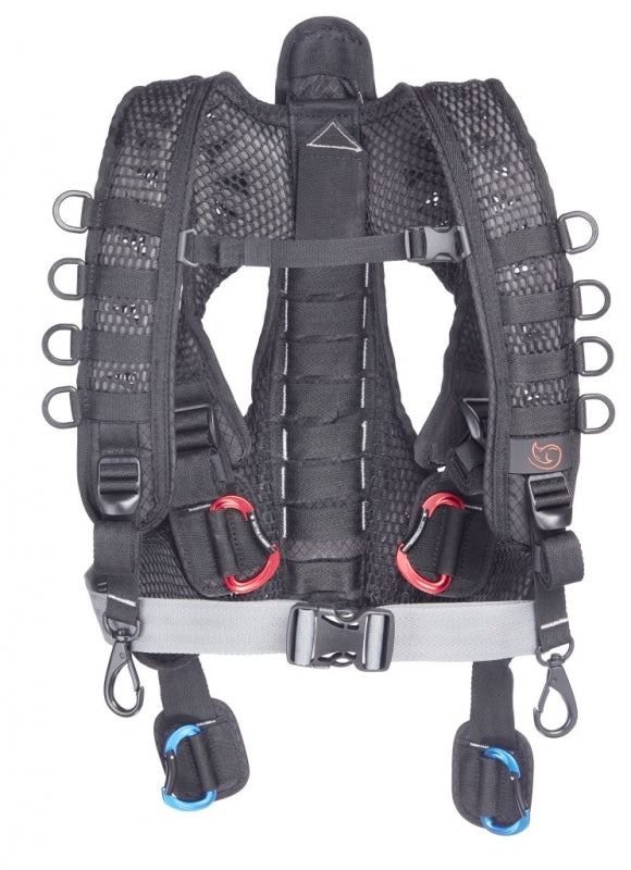 The Butterfly element (over and under shoulder straps) can be easily adjusted on the main exoskeleton portion of the harness making the harness perfect for various body types and sizes. Smartly integrated, along with the rest of K-Tek's Stingray products, there are plenty of D-Rings, strap mounts and Molle straps offering a multitude of attachment points.