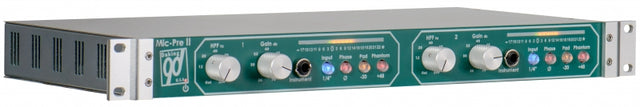 The Mic Pre II combines two of Daking's celebrated stand-alone Mic Pre One units in a single rack space form factor for the surprisingly low price. Like the Mic Pre One, the Mic Pre EQ, and the Mic Pre IV, the Daking Mic Pre II circuitry is based on a classic console design of the '80s with some upgrades: Variable High Pass Filters on each channel, Jensen input transformers, class "A" amplification, extremely high headroom (+24) and a single-sided 48V power supply.