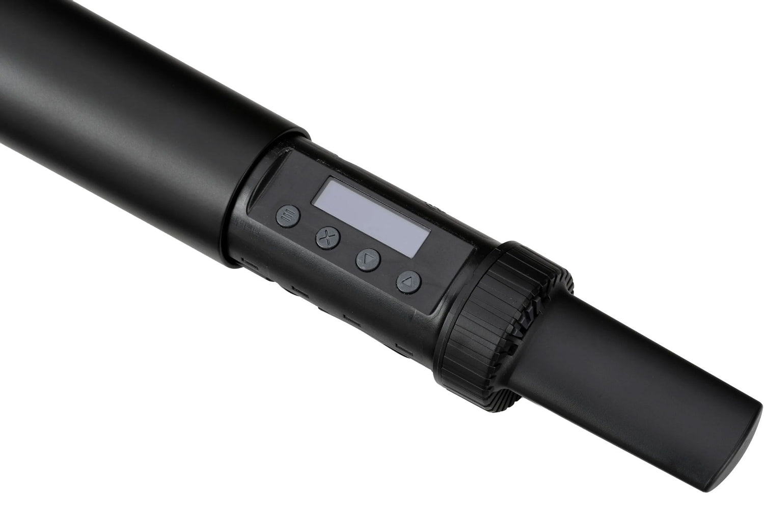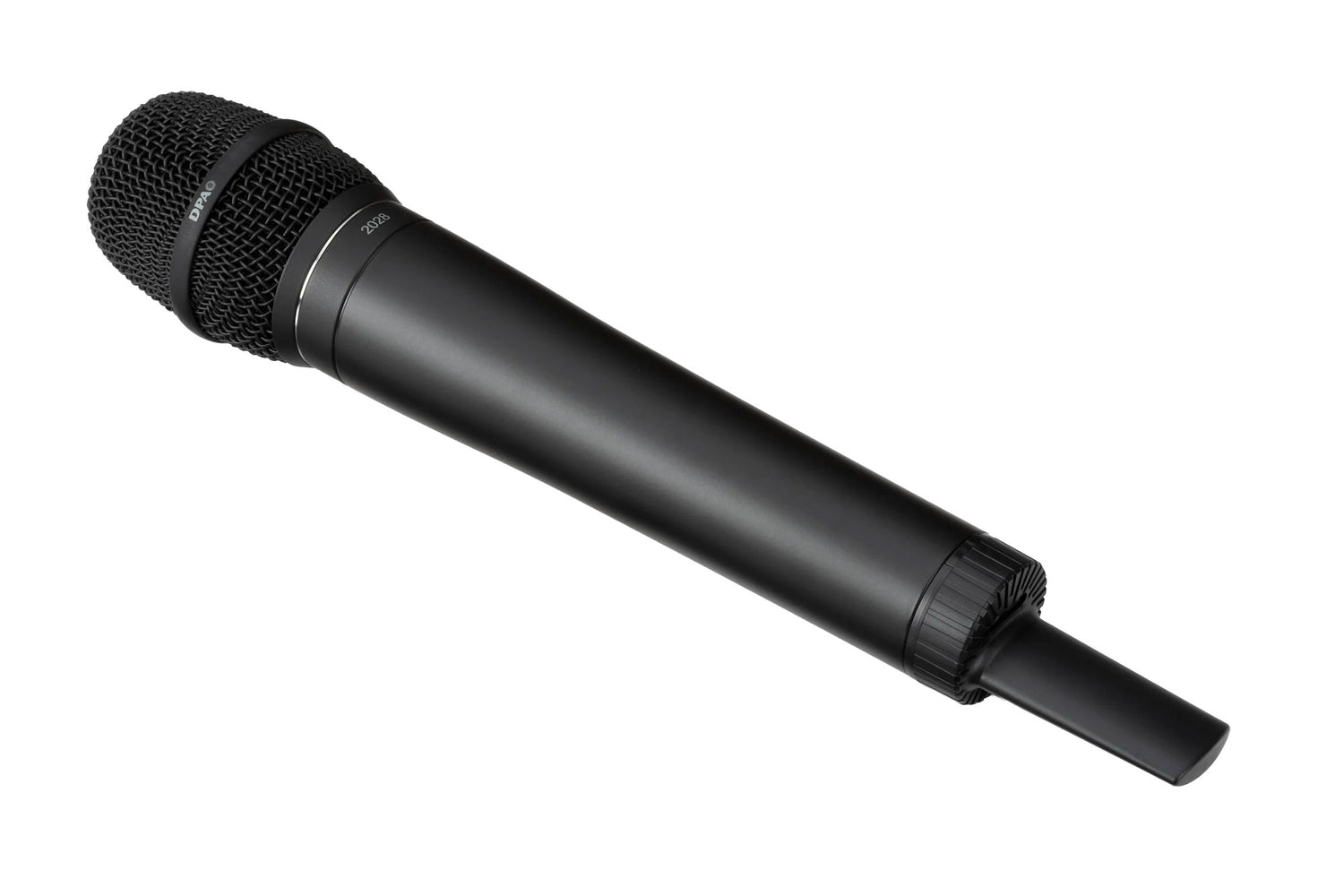 Wireless handheld microphone transmitter, supercardioid condenser capsule, digital UHF system, 24-bit audio, wideband 470–916 MHz, high dynamic range