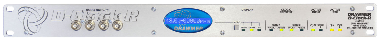 The Drawmer D-Clock-R is a rugged, professional-grade dual redundant word clock distribution amplifier, engineered for maximum reliability in mission-critical environments such as broadcast facilities, live venues, and studios. Building on the foundation of the original D-Clock, the D-Clock-R introduces full redundancy for both power and clock inputs, ensuring uninterrupted operation even in the event of a fault or power failure which makes it ideal for any application where stability is non-negotiable.