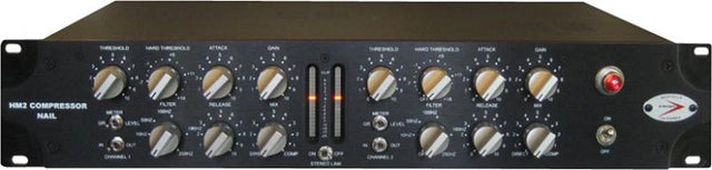 The A-Designs NAIL is one of the most musical yet transparent compressors ever manufactured. Housing hand selected tube circuitry and top-shelf components specifically chosen to best compliment and enrich the extended bandwidth of state of the art recording and mixing tools, the Nail is completely at home strapped across the main outs of hardware mixers or breathing analog warmth into DAW setups. While it has the ability to add character to any sound, it can also control dynamics very subtly in the background; and, unlike most compressors, the NAIL can be hit really hard without having the top end dragging down. Being able to switch from linked stereo to dual mono makes it a perfect tracking compressor as well; or, on a stereo mix, using dual mono with different settings on each side can have the effect of making the mix sound wider.