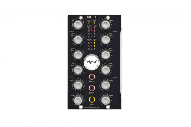 The elysia xmax is a 500 sereisclass-A stereo masterbus processor designed for high-end mixing and mastering. It features a multiband compressor with low-, mid-, and side-band processing, offering detailed control over dynamics. A soft clipper, derived from the alpha compressor, allows you to push your signal without unwanted digital clipping, making it an excellent tool for both studio and live applications.