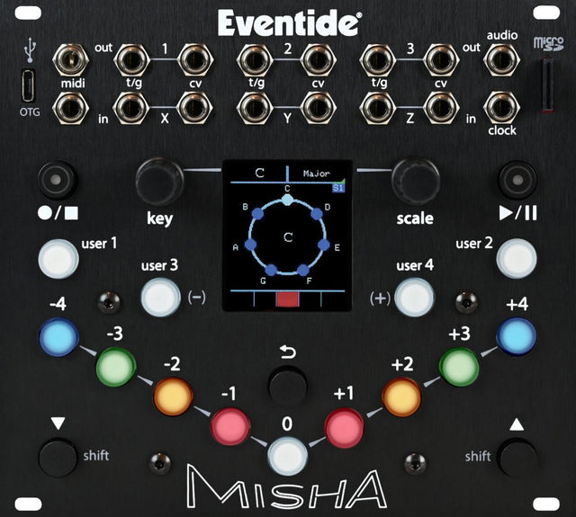 Misha is an innovative Eurorack instrument/sequencer that utilizes a unique, interval-based approach to playing and creating melodies. It's designed to be played like a keyboard instrument and yet it makes music in a way unlike any instrument before it. In addition to playing it live, you can also record sequences that can be modified in a multitude of ways, allowing for new paths of spontaneous creativity.