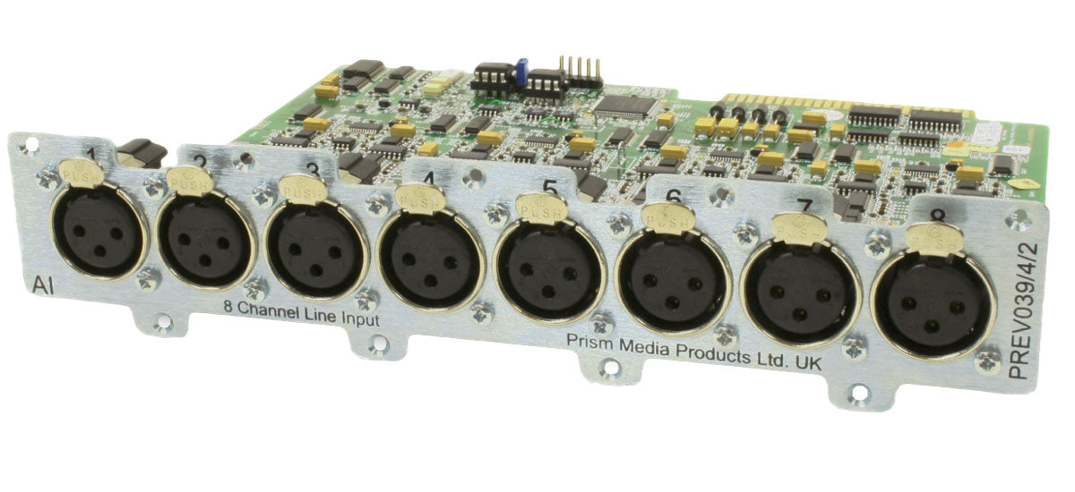 The 8C-AD Analogue Line Input Module adds eight channels of electronically balanced analogue inputs via female XLR connectors, delivering exceptionally detailed and accurate analogue-to-digital conversion. Each channel features adjustable input sensitivity with fine trim control, allowing precise level matching across a wide range of sources. Prism Sound’s Overkiller progressive limiter is also available per channel, helping to prevent overload while preserving the integrity of dynamic performances.