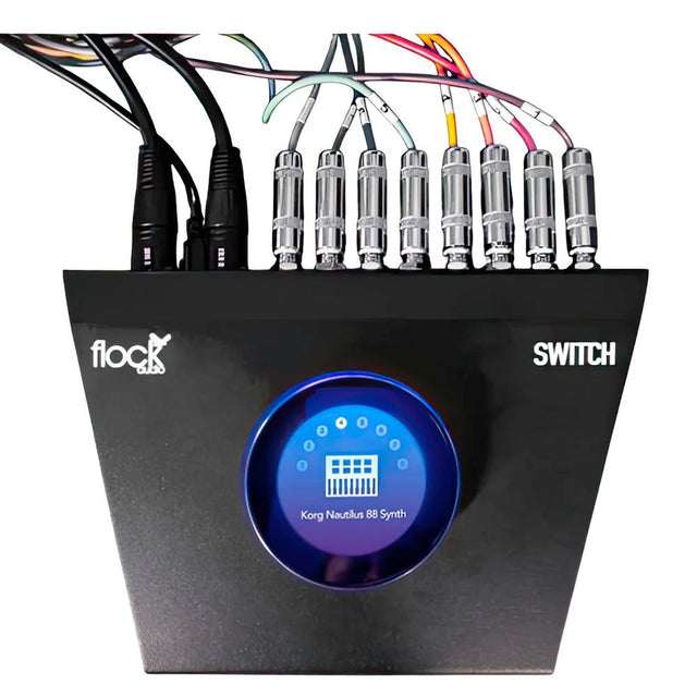 Introducing the Flock Audio SWITCH, a versatile analog instrument routing controller designed to streamline your audio setup. Whether you're in the studio or performing live, SWITCH allows you to effortlessly toggle between up to eight mono or stereo inputs and a pair of stereo outputs. This flexibility ensures that your instruments are always ready to play without the hassle of re-patching cables. The device features a large, customizable LCD rotary knob, enabling you to personalize display colors, input names, and even images, making your interface both intuitive and uniquely yours.