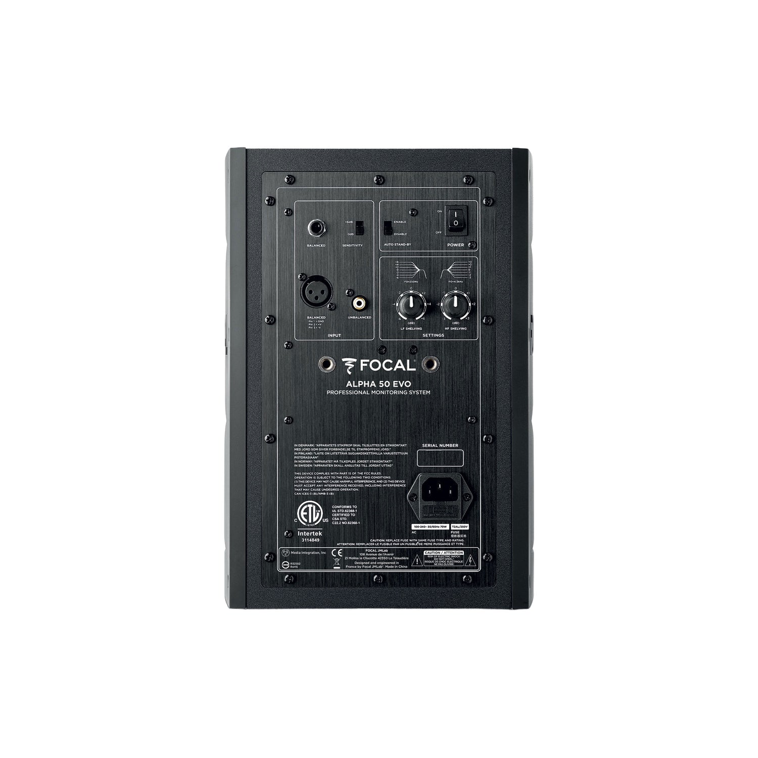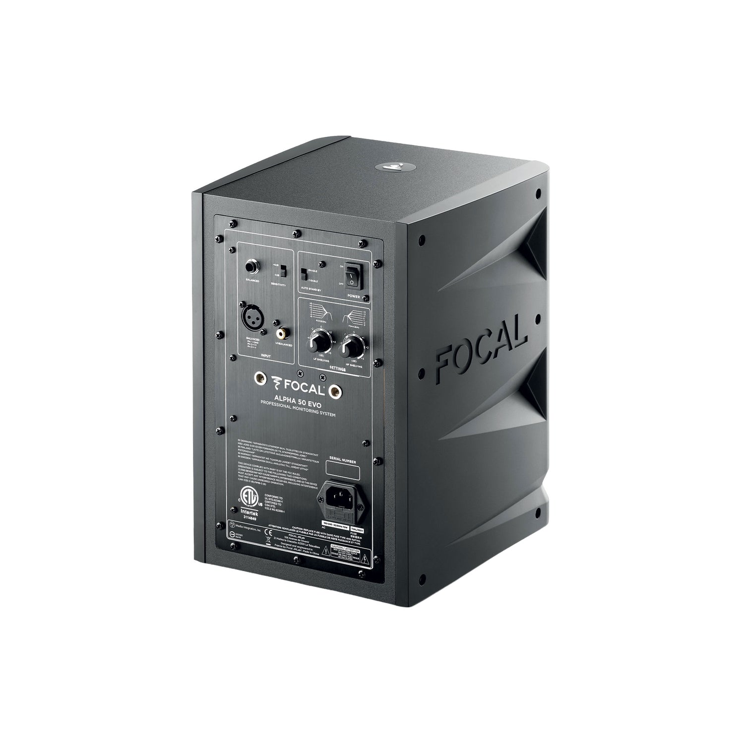 Connectivity is flexible, with XLR, TRS, and RCA inputs supporting up to three audio sources. The monitor also features an automatic standby mode, rear-panel power switch, and inserts for wall mounting. Finished in black vinyl and paint, and measuring approximately 12.2 x 9 x 9.41 inches, the Alpha 50 Evo offers professional performance in a compact and versatile format suited to modern production environments.
