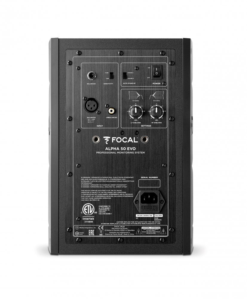 Alpha 50 Evo has a 1" (25mm) Aluminium tweeter and a 5" (13cm) woofer with Slatefiber cone developed and manufactured in Focal's workshops in France. This monitor features excellent dynamics and neutrality in its tonal balance. Thanks to new technologies and features, Alpha 50 Evo is highly versatile.