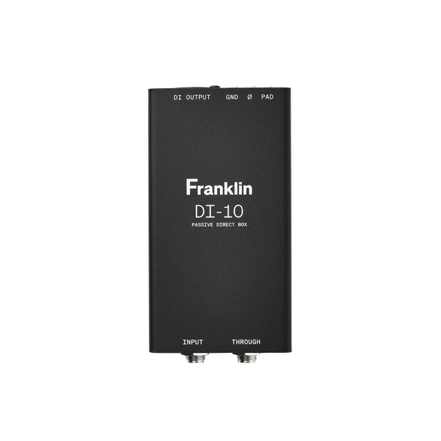 Built around a custom-wound Franklin Audio transformer, the DI-10 offers high headroom and a natural, full-range response while maintaining excellent isolation. The passive design requires no external power, making it easy to integrate into any setup. With a mono 1/4 inch instrument input, a balanced XLR output for connection to an interface or preamp, and a 1/4 inch through output for sending the original signal to an amplifier, it supports flexible routing options without compromising tone.