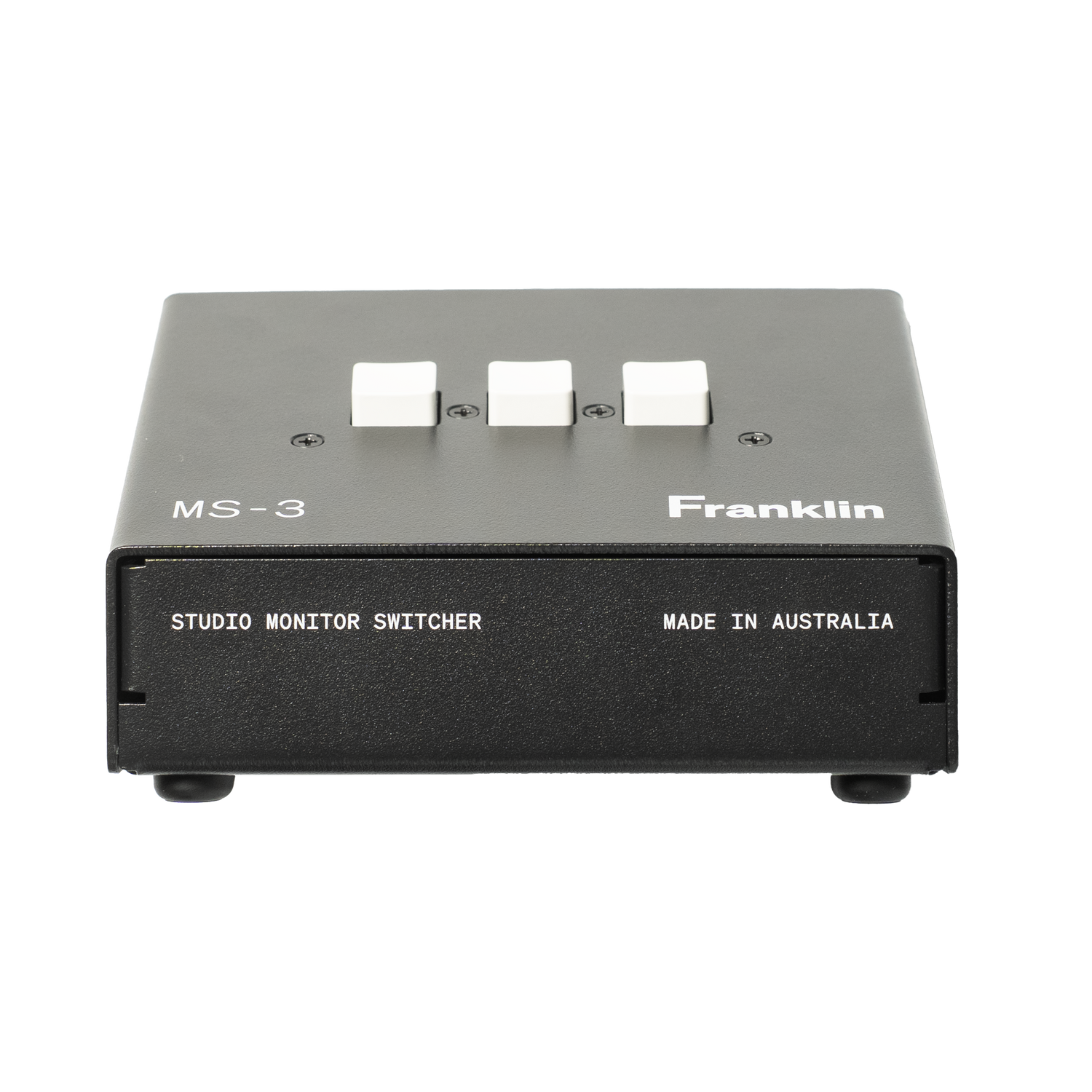The MS-3 Passive Monitor Switcher is a simple and transparent way to manage multiple speaker sets from a single stereo source. Designed for desktop use, it allows you to connect up to three pairs of monitors and switch between them using a row of ergonomic, heavy-duty push buttons. Whether you are comparing mixes on nearfields and midfields or sending audio to an artist station, the MS-3 keeps everything within easy reach.