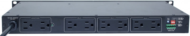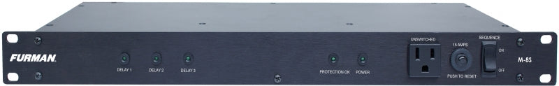 Merit M-8S Power Sequencer is the perfect low-cost AC power solution for any rack mount system. Install an M-8S in your rack, and the eight outlets in the rear panel will power up in sequence and protect all your equipment up to a 15-amp load.