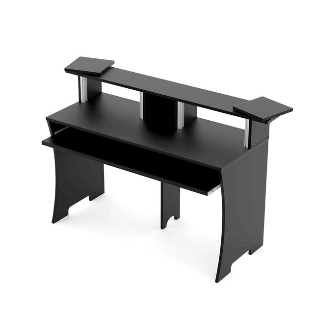 The new working console for home and studio projects by the creative Glorious hotbed comes with a clearly arranged design and is available in three colour variants. The Glorious manufacturers have worked flat out thus creating a working station that is equally intended for producers, studio engineers and hobby musicians. The construction is extremely robust, assembly can be carried out in no time and the classy piece of furniture offers space for important objects from the producing daily routine. Whether amplifier, studio mixer, microphone, keyboard, headphones or other equipment: Everything can be stored ergonomically and it all remains in reach. The pull-out drawer is very convenient for placing a master keyboard on top. When no longer required the drawer can easily and comfortably be pushed back thus facilitating a comfortable workflow for PC keyboard and equipment. Elaborate cavities for cable guide are self-evident and there is also enough space for DVDs, books or accessories. On the elevated second level it is possible to smoothly place large TFT displays. On the left and right side of this monitor space you can find two designated trays for studio monitor speakers. The chief attraction is that these trays are revolvable. This way it is possible to find the perfect position for the speakers. Glorious Workbench: Easily assembled, conveniently stored, well produced.