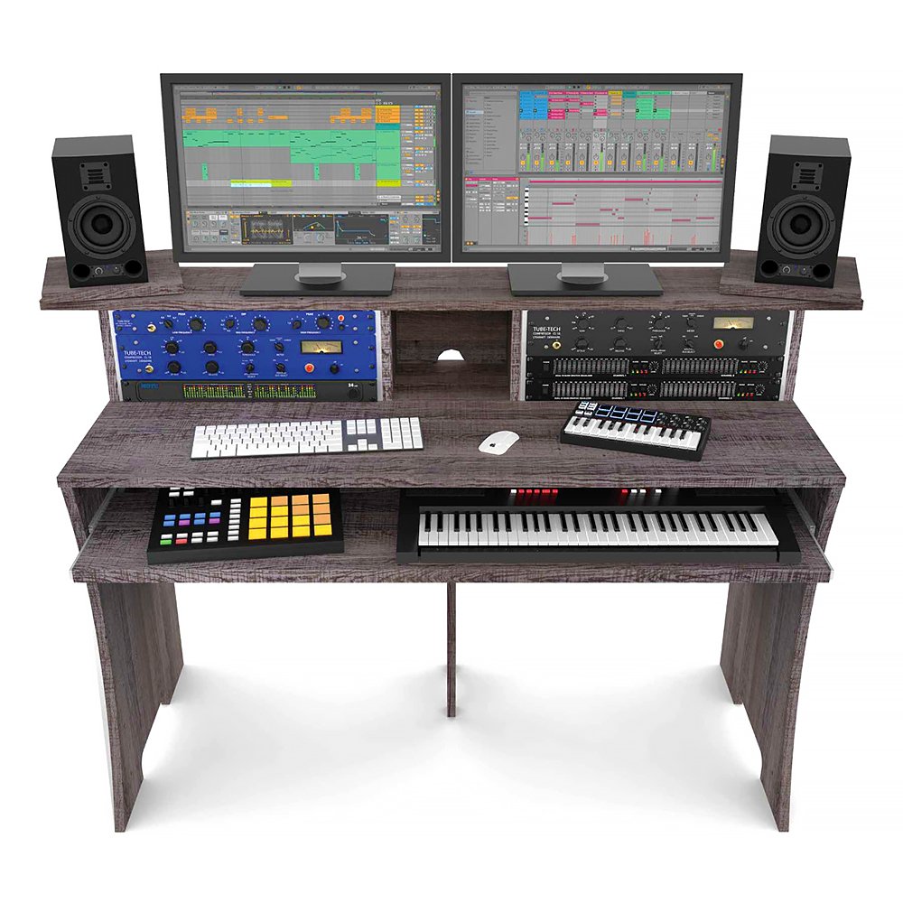 The new working console for home and studio projects by the creative Glorious hotbed comes with a clearly arranged design and is available in three colour variants. The Glorious manufacturers have worked flat out thus creating a working station that is equally intended for producers, studio engineers and hobby musicians. The construction is extremely robust, assembly can be carried out in no time and the classy piece of furniture offers space for important objects from the producing daily routine. Whether amplifier, studio mixer, microphone, keyboard, headphones or other equipment: Everything can be stored ergonomically and it all remains in reach. The pull-out drawer is very convenient for placing a master keyboard on top. When no longer required the drawer can easily and comfortably be pushed back thus facilitating a comfortable workflow for PC keyboard and equipment. Elaborate cavities for cable guide are self-evident and there is also enough space for DVDs, books or accessories. On the elevated second level it is possible to smoothly place large TFT displays. On the left and right side of this monitor space you can find two designated trays for studio monitor speakers. The chief attraction is that these trays are revolvable. This way it is possible to find the perfect position for the speakers. Glorious Workbench: Easily assembled, conveniently stored, well produced.