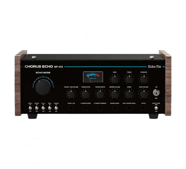 The Echo Fix EF-X3 Desktop with Black Front Panel is a high-quality tape echo that merges vintage analog tone with modern enhancements. Its 100% analog signal path includes BBD chorus, spring reverb, and multi-head tape delay for rich, organic sound. Individual playback head outputs enable stereo ping-pong effects from a mono source, while the dedicated Sound-On-Sound head unlocks longer delay times. Built in Australia with a rugged metal lid and striking Black front panel finish, the EF-X3 is designed for professional reliability, timeless aesthetics, and inspiring performance in any studio or live setup.