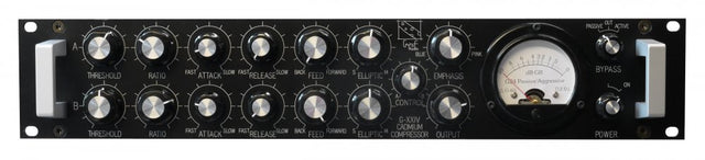 Gradually variable all the way from L/R to M/S Yes, although the G24 can be thought of as a couple of stereo compressors, it is in reality two M/S compressors that are fully variable all the way from from M-only (Mid component) to S-only (Side component) - the beauty being that when the "Elliptic" control is centered, (M-compression = S-compression), it acts (and is) the same as a stereo compressor. or rather: Two stereo compressors..