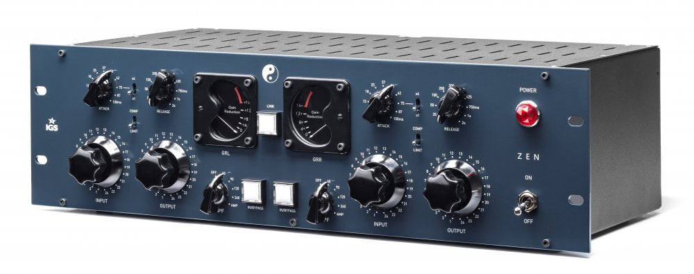 The ZEN is unique. The construction is based on the legendary compressors used in Abbey Road Studios. It's the musical canon of art used by The Beatles. The ZEN Compressor audio circuit is based on 14 bi-polar transistors in each channel. The compression is achieved by 8 hand-matched Zener diodes biased by a perfect feedback circuit.