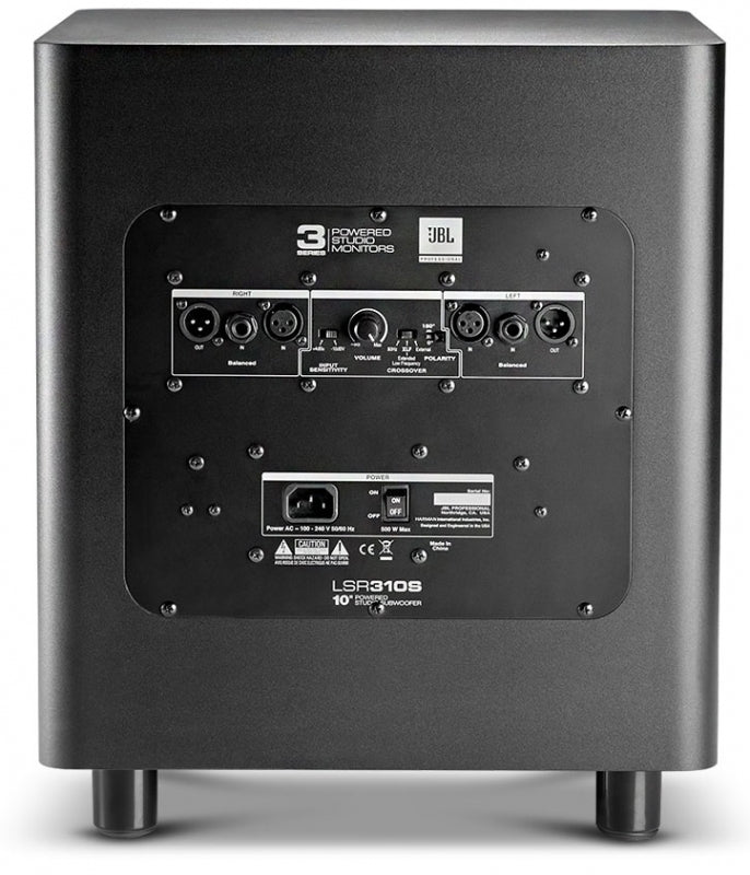 Extend your system LF all the way down! The LSR310S subwoofer incorporates JBL's patented Slip Stream™ Port working in concert with a custom 10" down-firing driver and a 200 Watt amplifier to add deep, powerful bass to any studio monitor system. A JBL first, the XLF Extended Low Frequency setting lets you hear your tracks with the augmented bass tuning used in today's dance clubs.